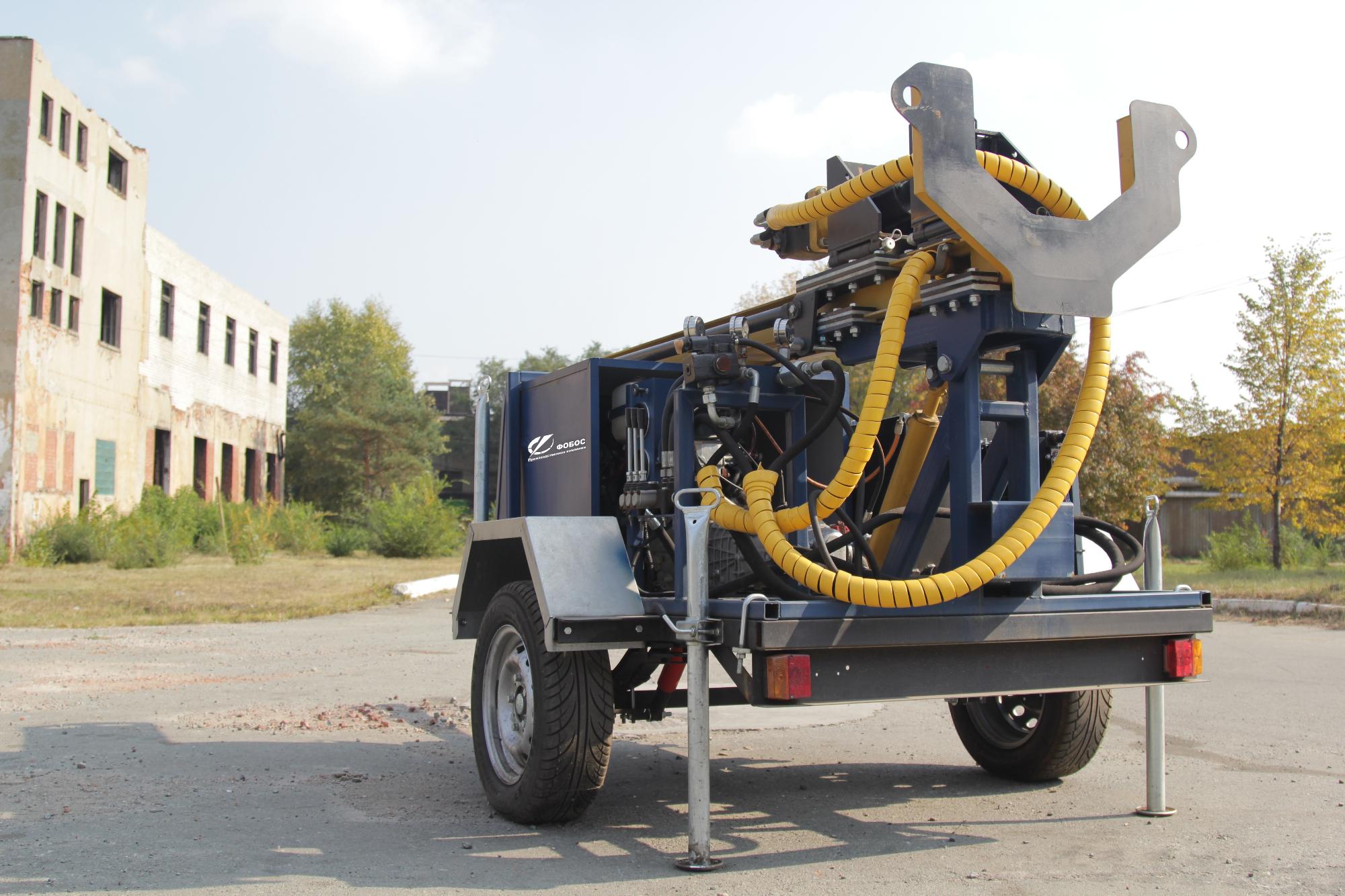 Установки поставляются на автоприцепе с рессорной подвеской и усиленными ступицами. По ПТС прицеп оформлен как буровая установка, поэтому не будет проблем с ГИБДД. Прицеп придает установке мобильность и высокую маневренность.