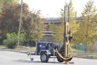 Малогабаритная буровая установка TM-80 способна осуществлять бурение даже твердых гранитных пород. TM-80 отвечает всем современным требованиям безопасности. На базу автоприцепа возможна также установка навесных моделей.